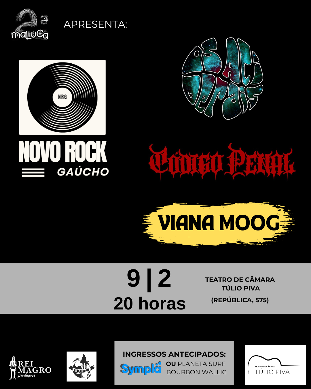 2ª Maluca especial Novo Rock Gaúcho reúne Os Aciderais, Código Penal e Viana Moog dia 9 de fevereiro, no Teatro Túlio Piva!