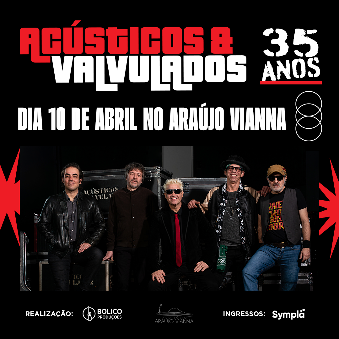 Com uma trajetória sólida que já ultrapassa mais de 2.000 shows, dez CDs, três DVDs e inúmeros hits marcantes do Rock Gaúcho e Brasileiro, os Acústicos & Valvulados seguem como uma das bandas mais importantes do Sul do país. Donos de sucessos como “Fim de Tarde Com Você”, “Até a Hora de Parar”, “Milésima Canção de Amor” e “Suspenso no Espaço”, o grupo acumulou indicações ao VMB/MTV, Prêmio Dynamite e Açorianos, além de participações em grandes festivais e colaborações com artistas como Frejat e integrantes do Skank.
