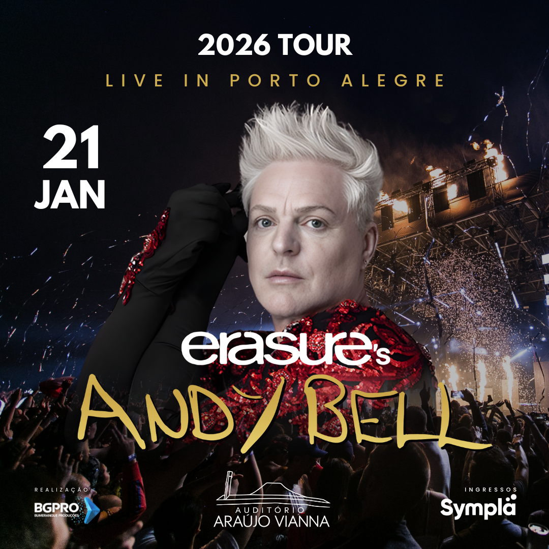 Andy Bell, voz do Erasure e um dos nomes mais reconhecidos da música pop/eletrônica mundial, vai fazer uma apresentação especial em Porto Alegre. O artista sobe ao palco do Auditório Araújo Vianna, no dia 21 de janeiro, interpretando faixas que marcaram sua trajetória ao lado do duo britânico e momentos do seu trabalho solo.