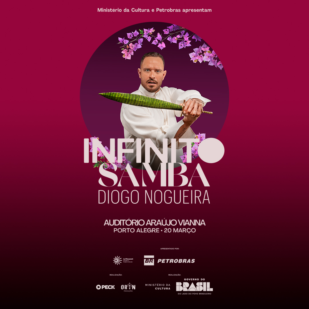 Diogo Nogueira anuncia a grandiosa turnê comemorativa “Infinito Samba”, um espetáculo que celebra duas décadas de uma trajetória marcada pela excelência, reinvenção, e a inegociável reverência ao samba de raiz. A turnê, que chega no dia 20/03/26 , em Porto Alegre , será um marco na força cênica do gênero, unindo a ancestralidade da música brasileira com um olhar inovador para o futuro no palco do Auditório Araujo Vianna. O projeto “Infinito Samba” é apresentado pelo Ministério da Cultura e Petrobras via Lei Federal de Incentivo à Cultura, e realizado pela Orin Produções e PECK.