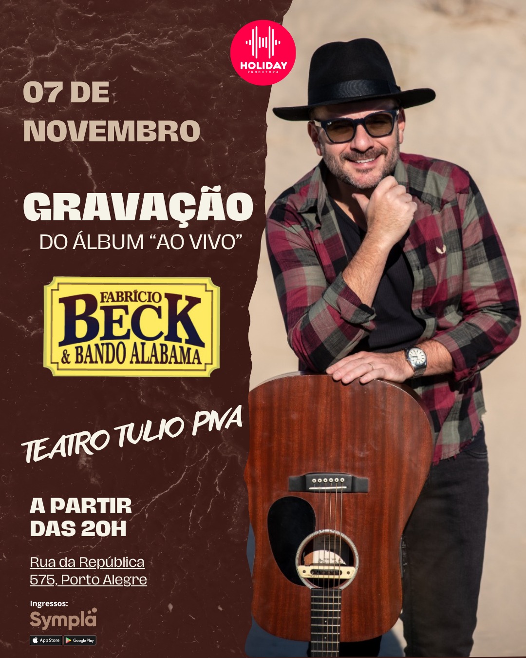 O show contará com uma seleção de músicas de seus dois discos solo (Fabrício Beck e Bando Alabama de 2018 e De Agora em Diante de 2024) + algumas releituras de sucessos inesquecíveis da música brasileira onde Fabrício resgata suas raízes na música. Essa noite contará com sucessos como “Casinha Branca”, “O Mundo é Maior Que Teu Quarto”, “Tudo é Passageiro”, “Depois Que o Sol Nascer”, entre outros e com diversas participações especiais, entre elas Rafael Malenotti (Acústicos e Valvulados), Lara Rossato e King Jim (Garotos da Rua).