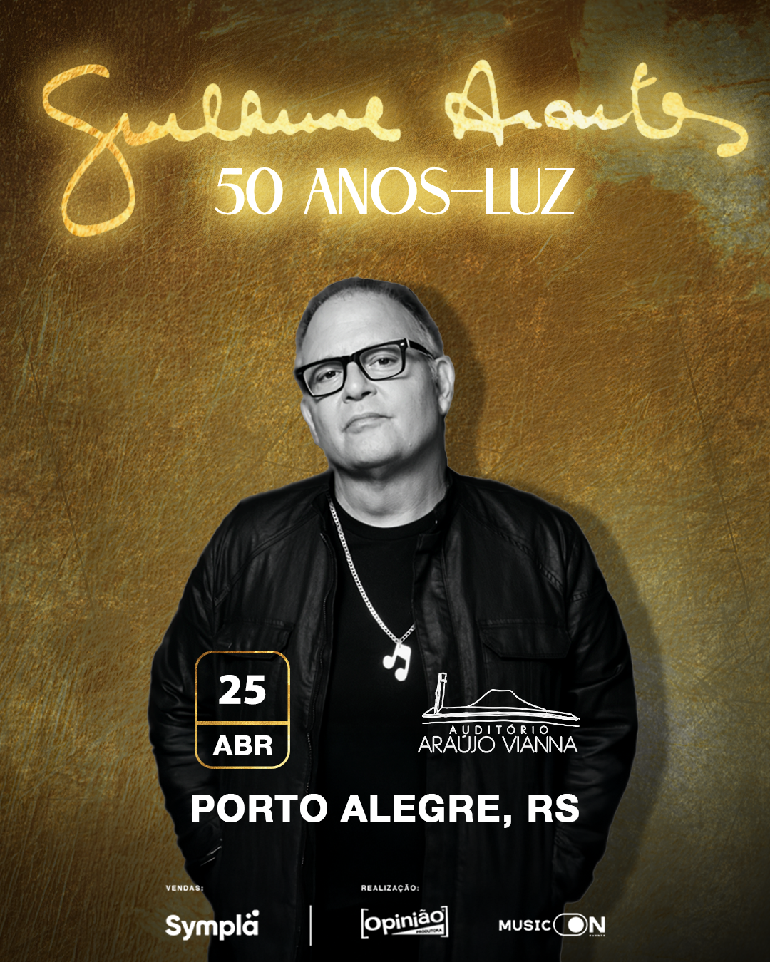 Guilherme Arantes, umas das figuras mais elogiadas da música nacional, vai viajar pelo Brasil em 2026 com a turnê “50 Anos-Luz”, que comemora as suas cinco décadas de carreira. Com um show que contempla os principais sucessos e as canções que marcam as diferentes fases da sua trajetória, o cantor e compositor subirá ao palco do Auditório Araújo Vianna, no dia 25 de abril.