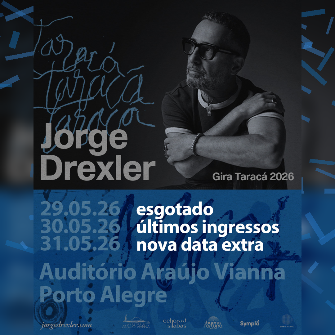 O músico, compositor e cantor uruguaio Jorge Drexler, uma das vozes mais influentes da música ibero-americana contemporânea, apresenta ao vivo seu novo disco “TARACÁ”, lançado em março de 2026.