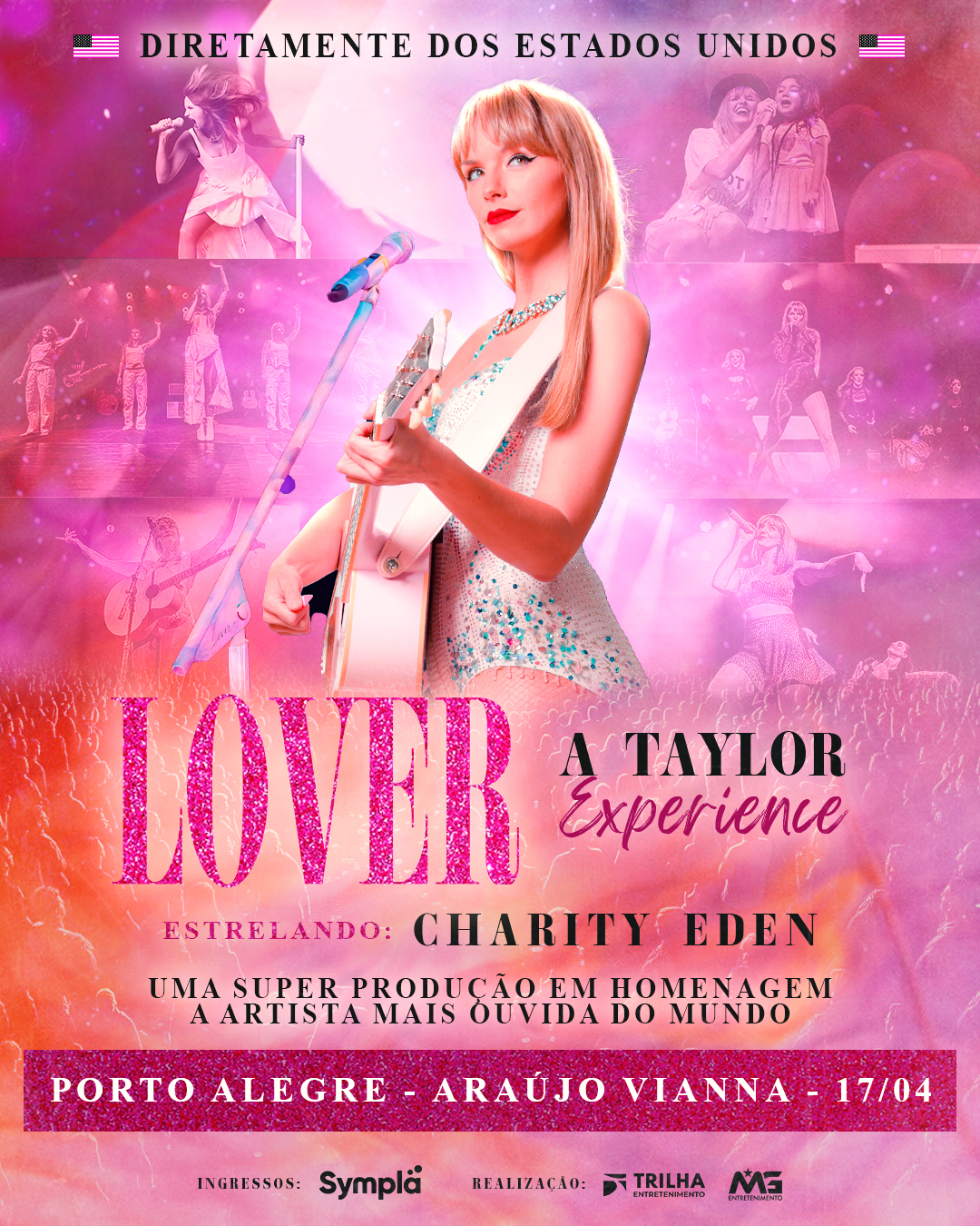 Em Abril, o Brasil recebe, pela primeira vez, o espetáculo “LOVER – A Taylor Experience”, uma celebração vibrante aos maiores sucessos da carreira de Taylor Swift. Com muita cor, emoção e energia, Charity Eden, protagonista do show, conduz o público por uma experiência imersiva que mistura música e sentimento, recriando no palco a atmosfera romântica e apaixonante que conquistou milhões de fãs ao redor do mundo.