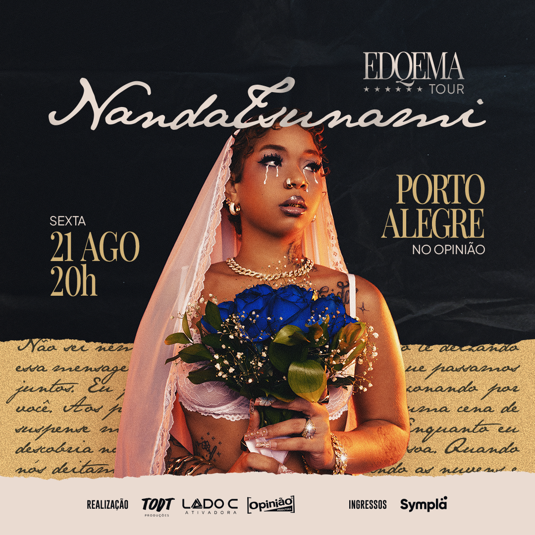 Dia 21 de agosto, Nanda Tsunami sobe ao palco do Opinião apresentando o álbum É Disso Que Eu Me Alimento (2025), uma obra que transforma autoconhecimento, força e intensidade em performance visceral. Imperdível!