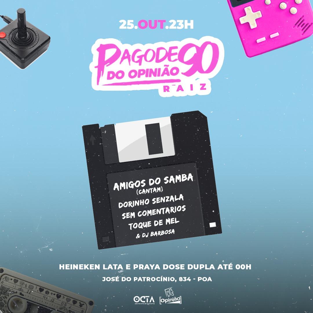 Dia 25 de outubro o Pagode 90 Raiz traz ao palco do Opinião os AMIGOS DO SAMBA: um supertime formado por Kauby, Alex Mel, Anderson e Everton Dornelles, cantando as melhores do Grupo Senzala, Toque de Mel, Sem Comentários, Pagode do Dorinho e muito mais!!!