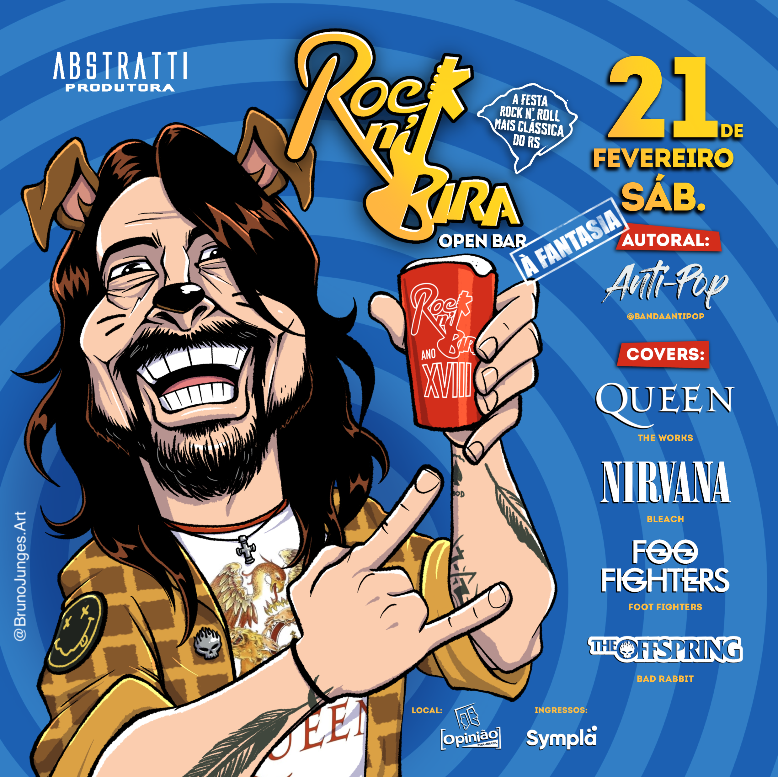 Uma das edições mais aguardadas da ROCK N’ BIRA – OPEN BAR, a festa rock and roll mais clássica do RS, no ano é a que ocorre no próximo dia 21 de fevereiro, sábado, a partir das 23h no Bar Opinião (Rua José do Patrocínio, 834) e que é À FANTASIA e constrasta com o clima carnavalesco do período. Uma seleção MUITO querida de bandas do rock foi escolhida: